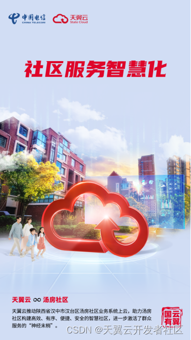 在相关政策的引导下,全国智慧社区试点工作不断有序推进。在陕西省汉中市汉台区,汤房社区围绕“共建、共治、共享”理念,积极寻找智慧社区建设最优解,携手天翼云探索出了一条云计算助力社区治理的新模式、新路径,进一步激活了群众服务的“神经末梢”。