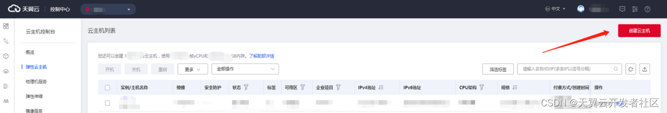 1.登录云主机控制台,选择创建云主机的资源池,点击“创建云主机”按钮。