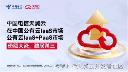 近日,国际数据公司(IDC)最新发布的《公有云市场数据跟踪,2023Q3》报告显示,在公有云整体市场增速全面收紧的背景下,中国电信天翼云市场份额大涨,中国公有云IaaS市场份额增长至12.9%,同比增长1.3pp,公有云IaaS+PaaS市场份额增长至11.6%,同比增长1.4pp,天翼云以强劲增势稳居第三。