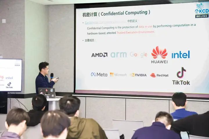 演讲详细讲解了机密计算的主流架构,和在移动云开发环境基于国产海光CPU架构的CSV加密容器下与knative搭建的Serverless环境做的探索与实践。受到现场业界同行的欢迎并进行了热烈讨论。