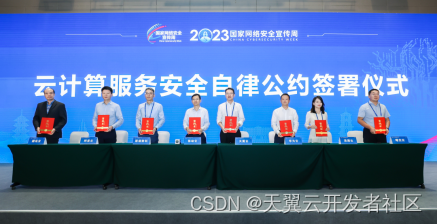 在2023年国家网络安全宣传周云计算服务安全分论坛上,天翼云携手业内头部云商,签署《云计算服务安全自律公约》,主动承诺落实国家制度标准、提升企业安全能力、开展行业威胁信息共享等10个方面,共同推动云计算行业自律和共治,以高水平安全保障云计算服务高质量发展。