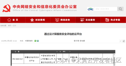 近日,新疆电信省级政务云平台正式通过中央网信办云计算服务安全评估增强级认证,这标志着天翼云政务云的安全可控水平已经获得权威认可,能够满足政务应用上云的高安全要求。