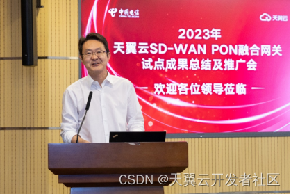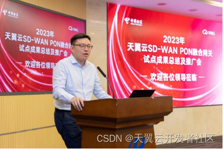 天翼云科技有限公司副总经理广小明对SD-WAN PON融合网关的开发历程和成果进行了详细介绍,从“云网融合”的新高度上,对SD-WAN PON进行了定位。他指出,天翼云SD-WAN PON融合网关(白盒)是中国电信加快构建以“云网融合”为核心特征的智能化综合性数字信息基础设施的新实践,是云网融合从协同阶段迈向融合阶段的重要一步。
