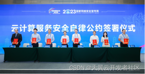 9月11日至17日,以“网络安全为人民,网络安全靠人民”为主题的2023年国家网络安全宣传周在全国范围内展开。15日,在云计算服务安全分论坛上,中国电信天翼云等8家头部云计算服务商联合发起了自律公约倡议,共同起草了《云计算服务安全自律公约》。天翼云科技有限公司副总经理、首席网络安全官广小明出席仪式并签署公约。