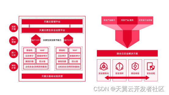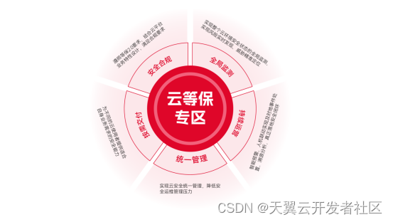 依托丰富的安全原子能力,天翼云云等保专区具备全局监测、安全合规、按需交付、统一管理、持续运营等优势,护航企业安全行稳致远。