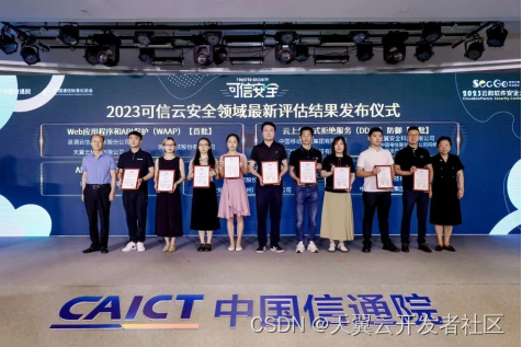 8月25日,由中国信息通信研究院(以下简称“中国信通院”)和中国通信标准化协会联合主办的2023首届SecGo云和软件安全大会公布了可信安全最新评估结果,天翼云通过“首批Web应用程序和API保护(WAAP)”与“零信任安全能力”两项评估。