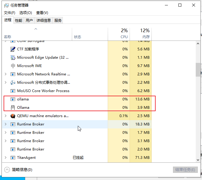 1、通过任务管理器,关闭ollama服务。