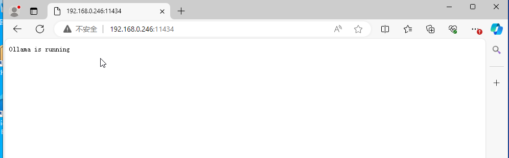 通过云主机中浏览器,输入本机局域网ip还有默认端口,可以看到ollama已经正常运行。