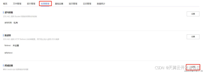 (1)进入bucket详情页,选择权限管理,跨域设置,如下图所示: