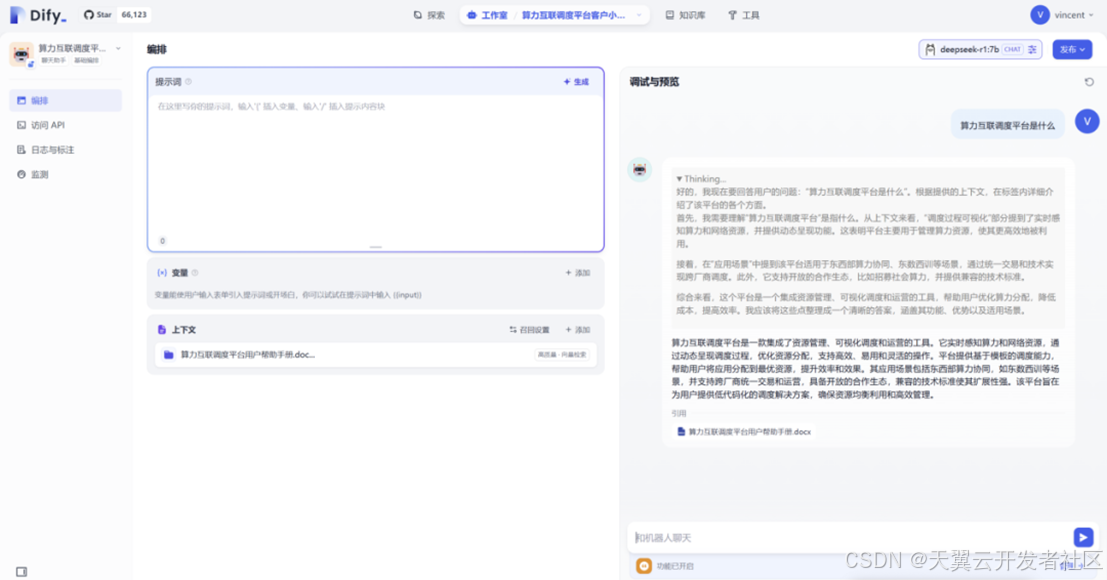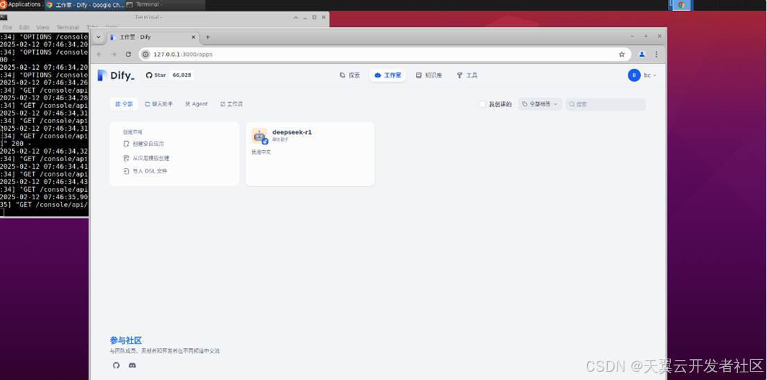 点击启动Dify图标,将自动部署Dify服务。部署完成后将自动弹出Dify页面,用户可在Dify中上传本地知识库,并通过DeepSeek-R1进行知识问答,搭建属于自己的专属知识问答小助手。