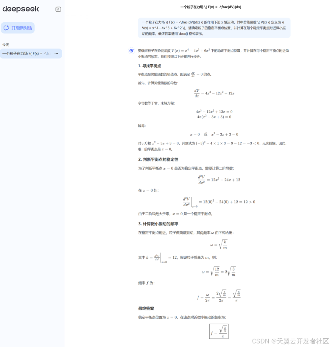 在“息壤”智算平台上部署的DeepSeek-R1模型,基于昇腾实例,实测一个涉及高等数学与物理学的复杂综合问题,该问题不仅需要模型具备强大的数学推理能力,还要求其能够理解并应用物理学中的概念。