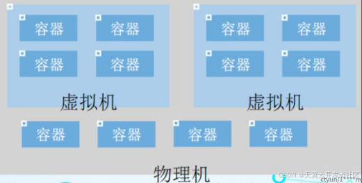 传统的虚拟机技术(VMware)将一组硬件虚拟化,在其上安装并运行一个完整的操作系统,然后在该系统上运行所需的应用进程;虚拟机就像一台主机。