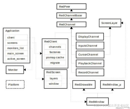Screens 和Windows:提供窗口控制和操作逻辑。ScreenLayer - screen layer绑定到特定的screen,用来提供矩形区域的操作。layer 是z-order。RedScreen - 实现screen的逻辑,控制window,使用screen layers 来显示他的内容。RedDrawable - 基本pixmap 的平台特定实现。它支持基本的渲染操作。
