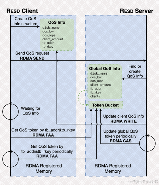 此次被收录论文主要介绍了在XSSD共享盘场景下,团队对高性能控制平面的预研与探索,创新性地打造了RESD控制平面,通过实现分布式QoS能力和I/O围栏协议来保证产品的SLO(服务等级目标)和数据一致性。RESD借助One-Sided RDMA操作,实现将QoS令牌操作和NVMe PR指令卸载到RDMA网卡,在保证共享盘QoS准确性与数据一致性的前提下,有效地减少了共享盘控制平面对I/O延迟的影响,降低了服务器负载,增强了整体系统的可扩展性。RESD原型的成功有效地助推了XSSD共享盘功能的技术迭代,为技术选型提供了明确的数据支撑。
