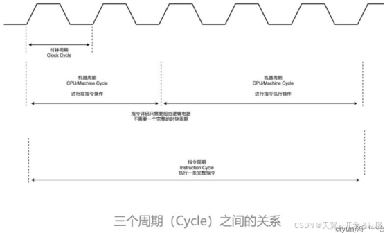 所以,我们说一个指令周期,包含多个 CPU 周期,而一个 CPU 周期包含多个时钟周期。