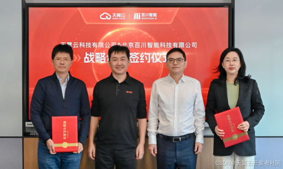 11月19日,天翼云科技有限公司与北京百川智能科技有限公司战略合作签约仪式顺利举行。后续双方将秉承诚信互用原则,充分发挥各自优势,在产品、技术、平台、生态等多个方面展开深度合作,更好地赋能千行百业数字化转型。
