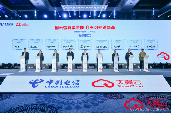 10月29日,以“国云智算聚金陵 自主可控铸新基”为主题的天翼云中国行·江苏南京站活动圆满举办。南京市数据局领导、中国电信江苏分公司领导、客户及合作伙伴代表莅临现场,共商转型发展新机遇,共创智慧江苏新未来。会上举行了天翼云全栈自主可控能力升级计划南京城市算力调度平台合作签约等仪式,通过持续构建领先的产品技术并不断加码算力基础设施建设,天翼云携手产业合作伙伴为南京市千行百业数智化转型赋能,全面助力南京加速建设引领性国家创新型城市。