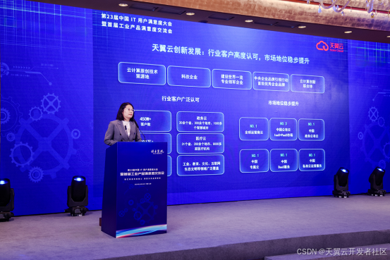 10月25日,2024第23届中国IT用户满意度大会暨首届工业产品满意度交流会在北京举行。现场揭晓“2024中国IT用户满意度征集结果”,天翼云凭借领先的产品技术、完善的客户服务以及在IT行业中的卓越贡献,荣获多项殊荣。其中,天翼云State Cloud云计算品牌、“息壤”一体化智算服务体系、连接保护办公轻量云AOne获评用户满意度第一;云顶大模型营销服一站式解决方案荣获用户首选品牌。会上,天翼云科技有限公司市场营销部总经理王彦丹发表演讲,分享天翼云践行云智一体,实现智算能力全面升级,赋能千行百业高质量发展的创新举措与实践应用。