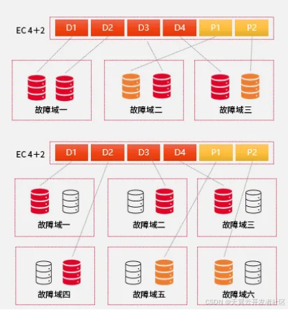 HBlock独创的副本折叠技术允许在一个故障域放多个副本来提高小规模集群的数据高可靠性。例如,只有三个故障域时,可以每个故障域放置两个副本,将EC2+1扩展为EC4+2,得盘率不变的情况下显著提升数据的容错能力,在扩容时,HBlock可智能调整数据分布,以最大化故障域的利用。