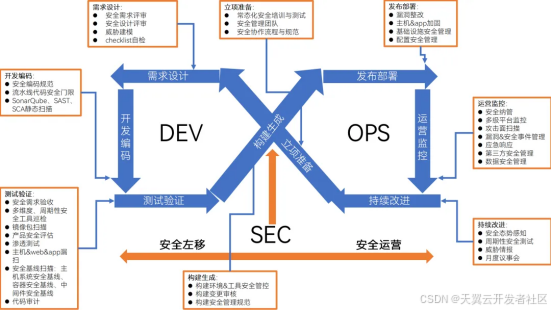 DevSecOps是一套基于DevOps体系的安全实践框架,通过一系列的安全控制措施,将安全性集成到软件交付流程的各个阶段,赋能研发团队高效安全交付业务价值。作为天翼云云原生安全体系的重要组成部分,天翼云DevSecOps在开发、交付、运营各环节进行全方位的安全能力建设,形成完善的研发运营一体化安全管控体系。