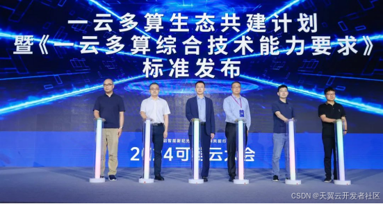 天翼云会上还出席多个重磅环节,携手产业各方共促云计算与人工智能深度融合创新。天翼云科技有限公司智能边缘事业部副总经理鄢智勇出席《云网融合下智能算力网络应用发展白皮书——基于DPU的SRv6应用实践》发布仪式、《大模型智算服务研究报告》发布仪式以及智算生态软硬件协同示范性项目启动仪式,天翼云将持续聚焦AI时代智算产业发展需求,共促智算产业繁荣发展。重庆电信IDC运营中心副总经理、天翼云科技有限公司重庆分公司总经理助理于敉出席《低空经济云发展研究报告》发布仪式、AI Cloud MSP技术服务实验室启动仪式暨AI Cloud MSP(面向智能化场景)标准发布仪式,一方面天翼云携手伙伴以技术创新推动低空经济向数字化、网络化和智能化方向发展,另一方面后者将聚焦云计算技术与AI的深度融合,通过汇聚产学研用各方力量,共同探索AI Cloud技术服务的新路径、新模式。天翼云科技有限公司云网产品事业部弹性计算产品线总监王华夏出席一云多算生态共建计划暨《一云多算综合技术能力要求》标准发布仪式,通过多方通力合作共促“一云多算”技术的标准化、产业化发展,为行业提供一个清晰的发展蓝图与实施路径。天翼云科技有限公司央企行业中心业务拓展总监介玮出席“以行业云平台打造云产业集群”央国企深度用云样板间工程启动仪式,通过树立标杆,形成行业示范效应,助推央国企数字化转型提速。