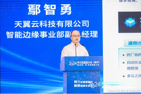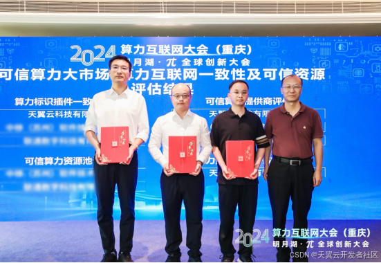 在算力互联网调度与应用专题论坛上,天翼云荣获中国信息通信研究院颁发的“可信算力提供商检验证书”“算力标识插件一致性检验证书”“算力资源接入一致性检验证书”,满足算力互联网一致性要求,代表了天翼云在算力服务标准化、资源服务可信度、互联服务可靠性和调度服务精准性方面获得权威认可,天翼云科技有限公司智能边缘事业部副总经理鄢智勇出席颁奖仪式。
