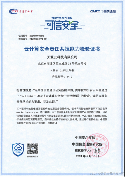 天翼云打造“红盾”安全品牌,公有云全量资源池通过等保三级认证,金融云荣获金标等保四级认证,公有云管理平台于17个省市通过密评,6个政务云通过了云评估增强级认证,通过26项安全资质认证,为客户实现安全合规提供充分保障。
