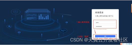 在天翼云官网开通弹性高性能计算服务后,官网控制台【集群详情页】会给出portal登录链接、portal用户名和初始密码,引导用户登录集群内portal。用户点击链接进入portal登录页面,输入账号和初始密码即可登录。