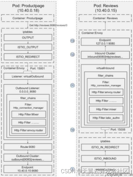 a.在pod启动前,proxy进行流量劫持的过程:首先运行 Init 容器,Init 容器用于设置 iptables 将进入 pod 的流量劫持到 Envoy sidecar proxy。