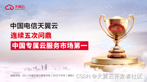 近日,国际数据公司IDC发布的《中国专属云服务市场(2023下半年)跟踪》报告显示,2023下半年,专属云服务整体市场规模同比增长18.0%。中国电信天翼云以21.8%的市场份额,蝉联中国专属云服务市场第一。天翼云连续五次登顶,以实力持续领跑中国专属云服务市场。