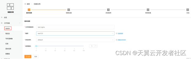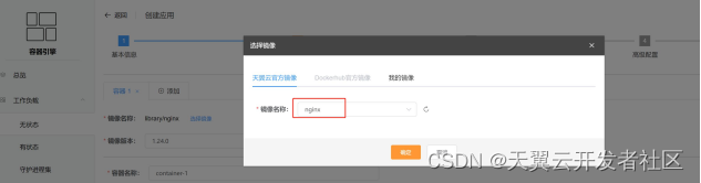 4.按照页面提示填写,包含基本信息、容器设置、添加服务、高级配置几步;