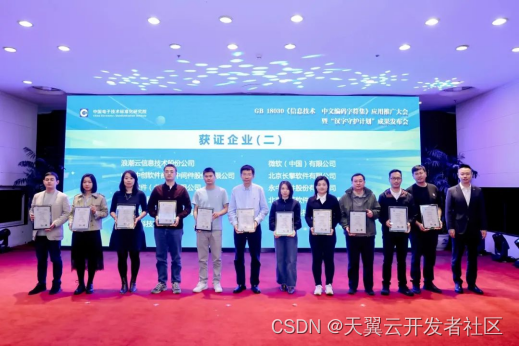 近日,由工信部电子工业标准化研究院主办的GB 18030《信息技术 中文编码字符集》应用推广大会暨“汉字守护计划”成果发布会召开,工信部信发司、中央网信办信息化局、教育部语言文字信息管理司、电子标准研究院等多部委领导出席。发布会现场,天翼云TeleDB数据库通过强制性国家标准GB 18030-2022并获最高级(3级)认证证书。