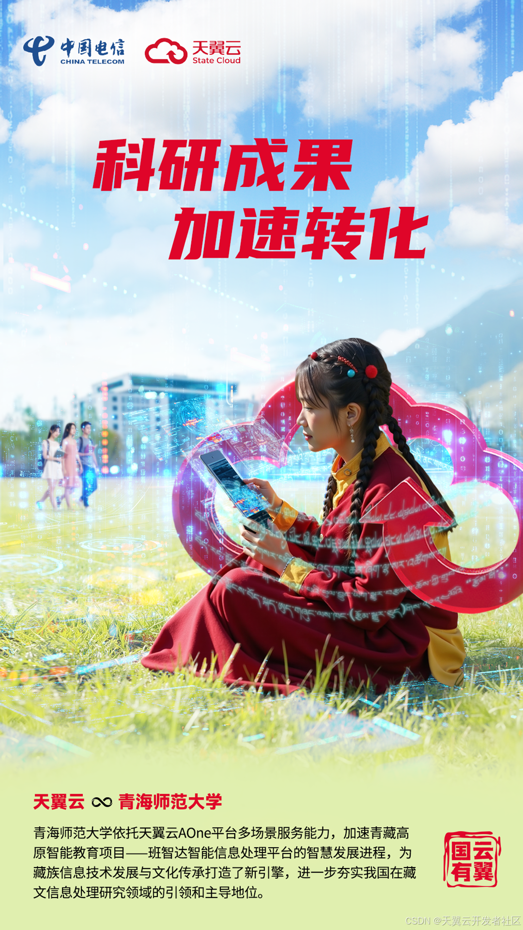 作为综合性省属重点大学,青海师范大学(以下简称“青海师大”)积极响应国家战略需求,探寻数字技术与教育融合发展之道,依托天翼云丰富的计算资源及AOne平台多场景服务能力,赋能学校科研成果转化提速,为教育高质量发展筑牢“数字底座”。