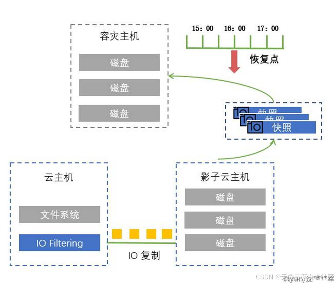 (1)CDP技术:云容灾CT-CDR(Cloud Disaster Recovery)采用CDP(Continue Data Protection)技术,能够在IO级别进行复制能极大的提升数据保护的及时性。。