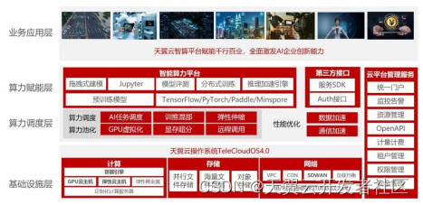 天翼云紧跟市场需求,依托分布式架构的云底座和海量的计算、存储、网络资源打造智算平台,具有自主可控、高性能、算力调度赋能、统一管理调度、产业赋能等优势。
