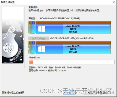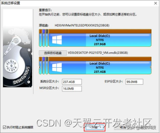 步骤三:点击"开始"按钮,将物理机上的操作系统迁移到刚刚创建的虚拟磁盘上。