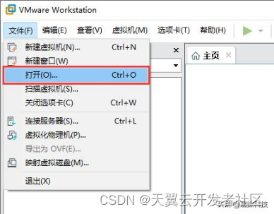 以VMware Workstation为例,打开刚刚迁移的系统。点击"文件"菜单,然后选择"打开"选项。