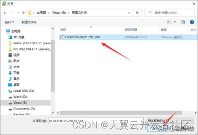 浏览电脑上的数据,找到并选中刚刚创建的虚拟机,然后点击"打开"按钮。