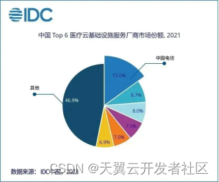 1月17日,IDC发布的《中国医疗云基础设施服务市场份额,2021:云厂商各辟蹊径》(IDC , 2023年1月)报告显示,2021年中国医疗云基础设施服务的市场规模比上一年增长47.0%,其中,中国电信天翼云以15.0%的市场份额,位列第一名。