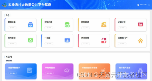 具体来看,“1+8+N”产品形态中,“1”即一套适合农业农村发展的大数据平台建设和管理标准;“8”是指集数据采集、数据治理、数据管理、计算分析、技术支撑、共享交换服务、大数据“一张图”、服务门户等八个模块于一体的基座平台,为农业农村大数据资源中心搭建及场景应用提供服务支撑;“N”是能够应对不同地区通用性及个性化需求的丰富基础应用和扩展应用,可为各级农业农村部门信息化应用需求提供定制化服务。