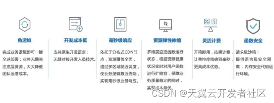▪ 易上手的开发者工具:为开发者提供CLI和Web IDE。CLI提供函数全生命周期管理功能,可以和开发者已有的CI/CD流程进行集成。Web IDE提供一站式、全流程的函数管理与在线开发平台,帮助开发者专注于业务代码,提高开发效率。