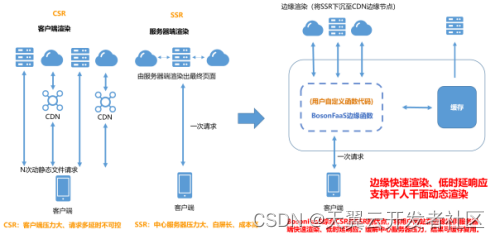 边缘渲染场景:在电商大促场景或热门演唱会、大会电子票务场景中,用户区域分散、访问瞬时爆发、千人千面的个性化内容响应,需要大批量的实时动态运算渲染。基于BosonFaaS边缘轻函数的解决方案,充分利用CDN网络仅回源获取部分状态数据,边缘进行短时缓存和个性化内容渲染,分散请求压力,提高响应速度,提升用户体验。