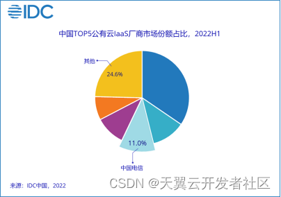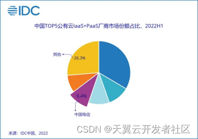 在2022H1中国公有云IaaS市场中,中国电信天翼云以11.0%的份额排名第三,同比上涨了1.4pp;IaaS+PaaS市场,中国电信天翼云以9.4%的份额排名第四,同比上涨了1.2pp。
