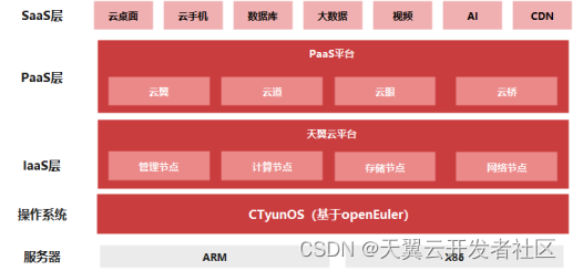 openEuler是数字基础设施开源操作系统,通过一套操作系统架构,支持主流计算架构100%覆盖,覆盖全场景应用场景。CTyunOS操作系统基于openEuler 20.03 LTS版本自主研发,包含天翼云完全自研的虚拟化增强组件和云平台组件,完善的编译工具链及开发环境等特性,具有高性能、高可靠、强安全和易扩展的特点,充分结合了开源社区的能力,是针对云计算场景进行了深度优化的定制增强版本。