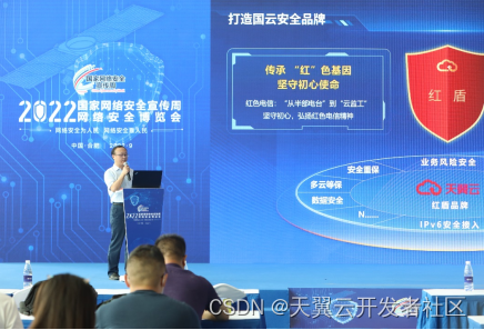 9月7日,2022年国家网络安全宣传周在安徽省合肥市举办。活动期间,中国电信天翼云举办了云原生安全产品“红盾”系列介绍会,会议以“红云天翼 安全普惠”为主题,详细介绍了“红盾”系列产品的主要功能及优势等。数字经济时代,伴随着云计算技术不断发展和深入应用,云上安全问题也日益凸显。天翼云科技有限公司网信安部副总经理朱良海表示,安全可信是国云的要求和本质特征,也是天翼云的核心竞争力。天翼云一直在思考和实践,从体系构建、技术创新、品牌打造、安全护航、生态共建五方面发力,铸牢国云安全,助力千行百业健康安全发展。