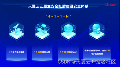 天翼云科技有限公司安全专家林顺东表示,天翼云以“4+1+1=N”为理念,基于云原生底座将安全能力整合至统一的安全平台,深耕云原生业务应用安全、网络安全、数据安全、云原生安全4大核心技术领域,打造一体化云安全可信运营体系和零信任架构,构建安全核心能力自主可控的技术壁垒。