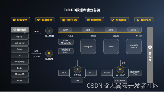 历经十年磨炼,天翼云自研TeleDB数据库沉淀了种类齐全的系列产品,形成安全可靠、极致弹性、金融级高可用、AP/TP混合负载四大核心能力。此次发布会,TeleDB数据库再次全面升级,天翼云围绕数据可用性、易用性、安全性的内核研发,逐步攻克云原生、HTAP、容灾等数据库关键技术。