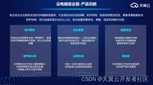 目前,天翼云电脑提供公众版和政企版两种版本,可以满足不同用户云上办公的差异化需求。