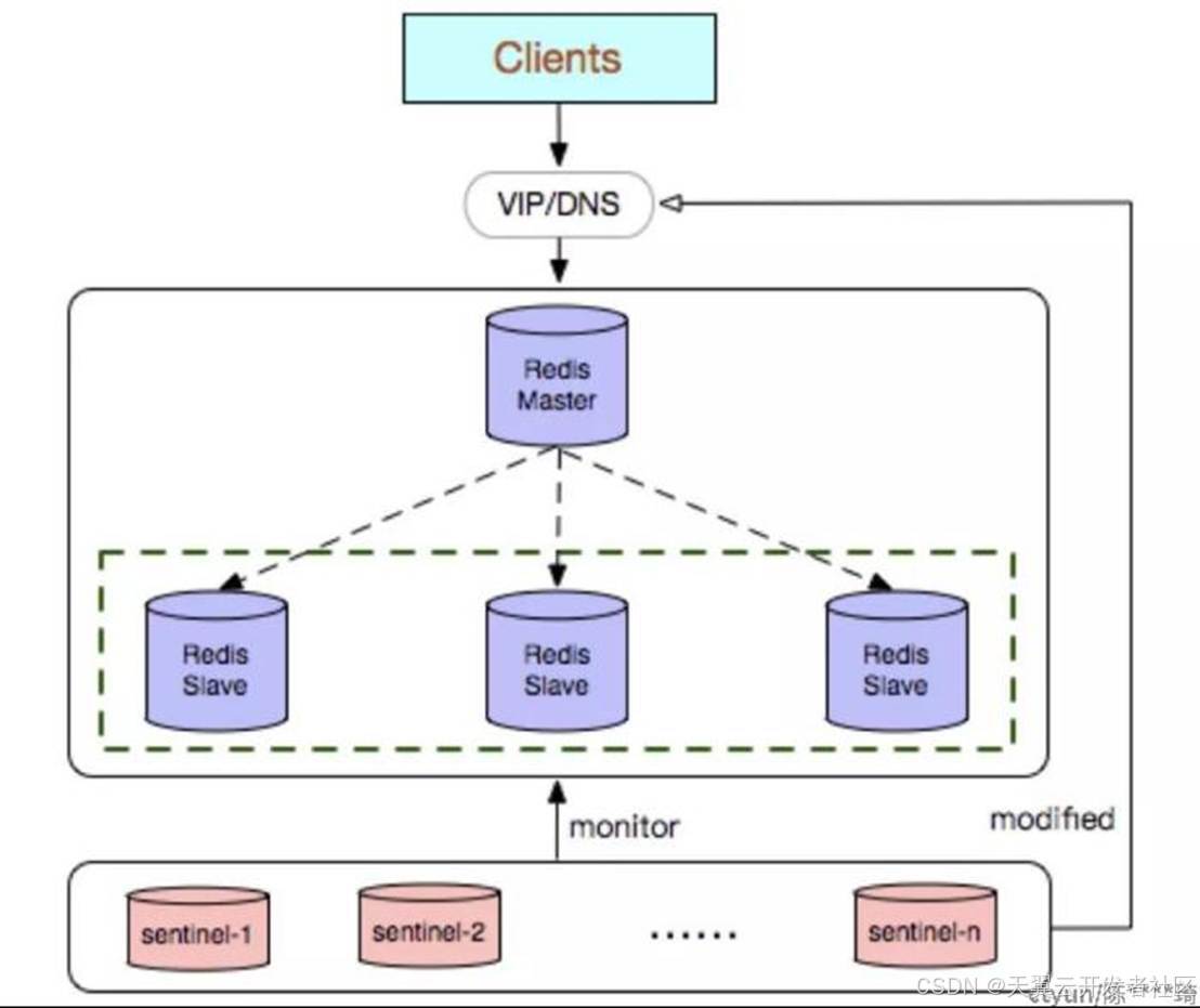 Redis Sentinel是社区版本推出的原生高可用解决方案,其部署架构主要包括两部分:Redis Sentinel集群和Redis数据集群。