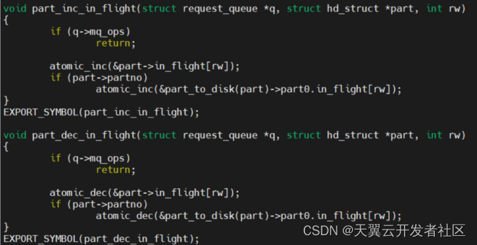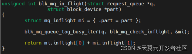 这中间就需要用到一个重要的变量,磁盘的inflight。inflight表示当前设备中未完成的IO请求数量,在CentOS 7中是通过每次IO开始时加1,结束时减1来实现对inflight的维护。